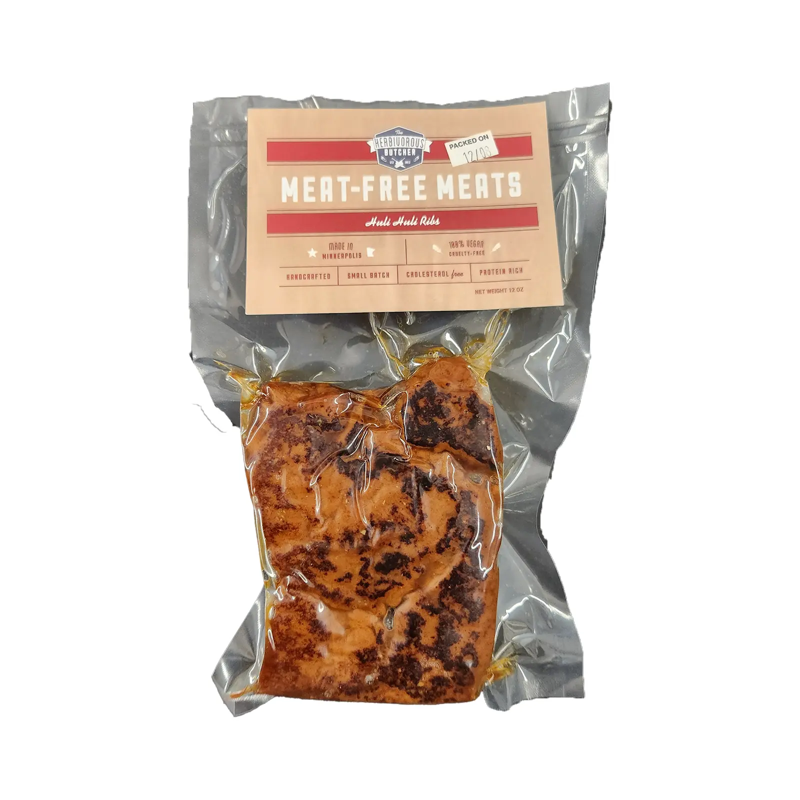 INGREDIENTS: Huli Huli Marinade (Water, Pineapple Juice, Soy Sauce, Brown Sugar, Sesame Oil, Spice), Vital wheat gluten, Pineapple juice, Water, Soy Sauce, Brown Sugar, Less than 2% of: Nutritional Yeast, Chickpea Flour, Tapioca Flour, Spice, smoked paprika allergens – wheat, soy, sesame